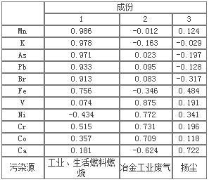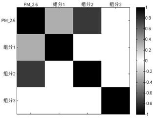 为了进一步研究PM2.5与大气重金属之间的关联,并为PM2.5的控制提供方向,我们通过已经划分的三个组分与大气PM2.5浓度进行相关性分析。结果如图5,发现该地区主要影响PM2.5的污染源为组分2(冶金工业废气)。